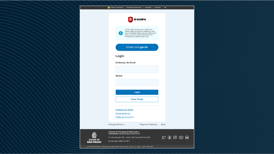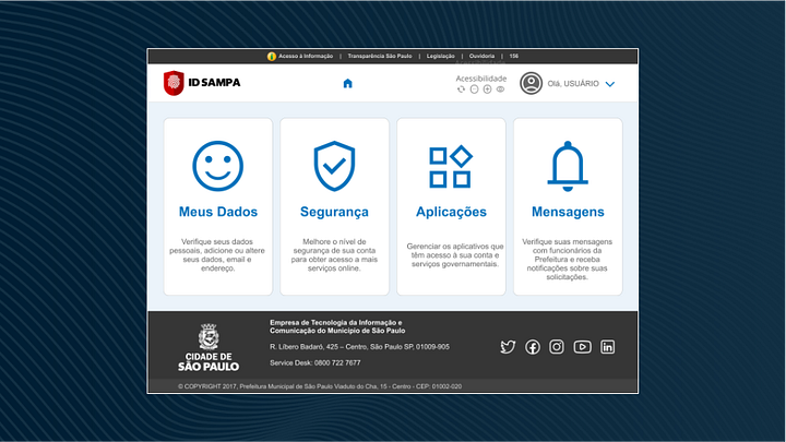 Desenvolvimento de Branding, Arquitetura de Informação e UI/UX Design para o “ID Sampa”, o portal de identidade digital unificada da Cidade de São Paulo, focado em simplificar o acesso do cidadão aos serviços públicos.