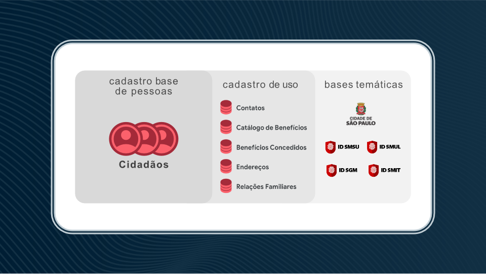 Confiança através da clareza. Num projeto governamental, a fricção gera desconfiança. O insight que guiou a direção de criação foi transformar um ecossistema de dados complexo numa interface tão simples e intuitiva quanto uma aplicação bancária moderna. O cidadão não precisa de entender como as “bases temáticas” da prefeitura se conectam no backend; ele só precisa de uma interface limpa que diga “Meus Dados” ou “Segurança”.