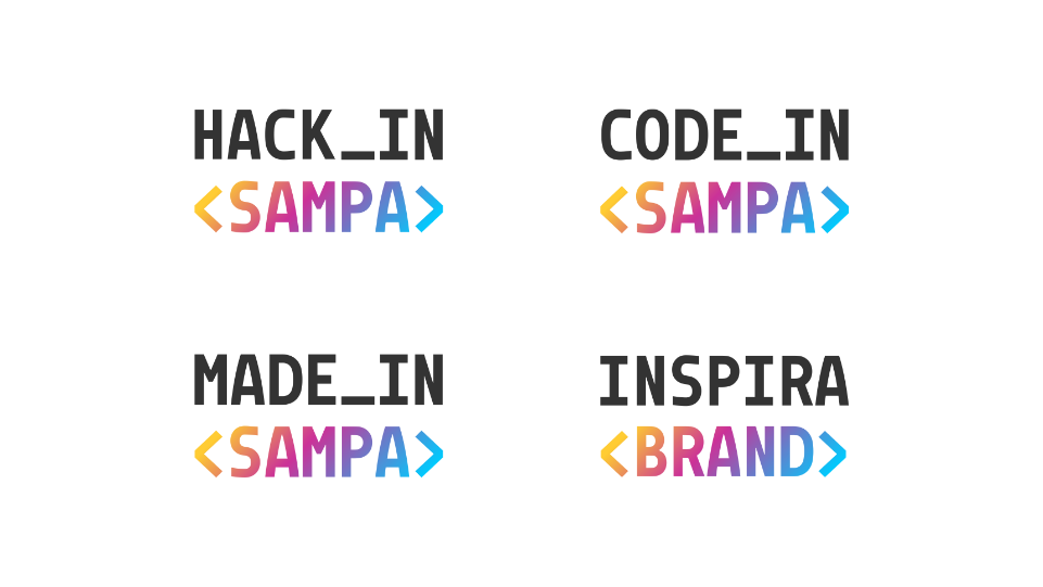 <SAMPA>(com um gradiente quente e vibrante que vai do amarelo ao azul, representando a diversidade e a energia da cidade).Arquitetura de Marca Modular: Como Diretor de Criação, o objetivo foi desenhar um ecossistema, não apenas um logo isolado. Criamos um sistema expansível onde a estrutura base serve para nomear diferentes iniciativas do espaço: HACK_IN
