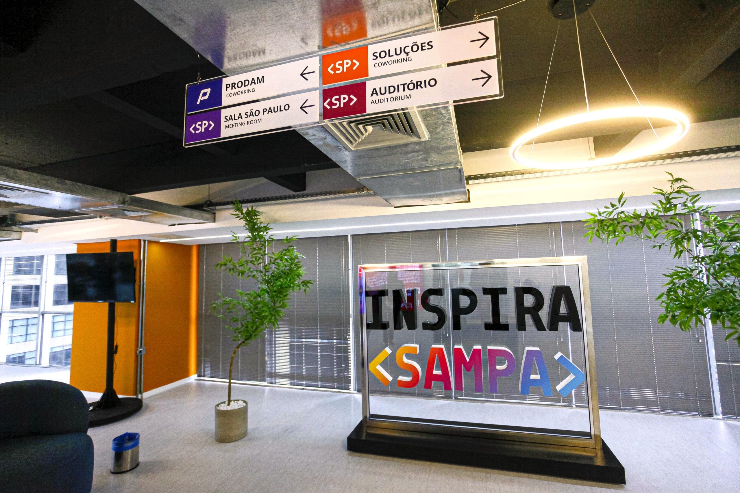 Criação de Naming, Identidade Visual, Arquitetura de Marca e Environmental Graphic Design (Design de Ambientes/Sinalética) para o “Inspira Sampa”, o Centro de Excelência em Tecnologia e Inovação da Prodam e da Prefeitura da Cidade de São Paulo.