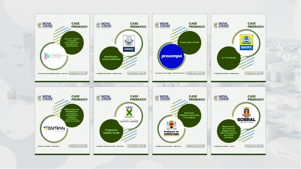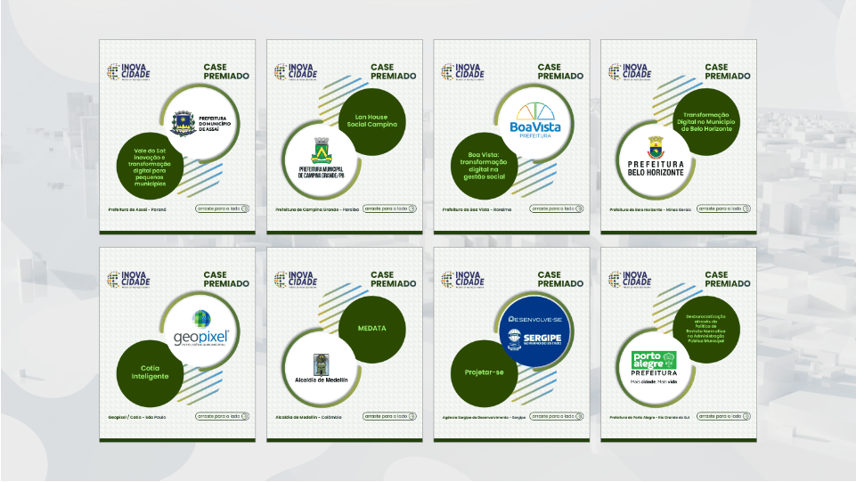 Padronização Digital: Produção em massa de dezenas de cards e apresentações para os “Cases Premiados” (ex: Prodam, Cotia Inteligente, Prefeitura de Recife, etc.), garantindo uma leitura hierárquica perfeita: Quem ganhou, Qual o projeto, e a chancela do InovaCidade.